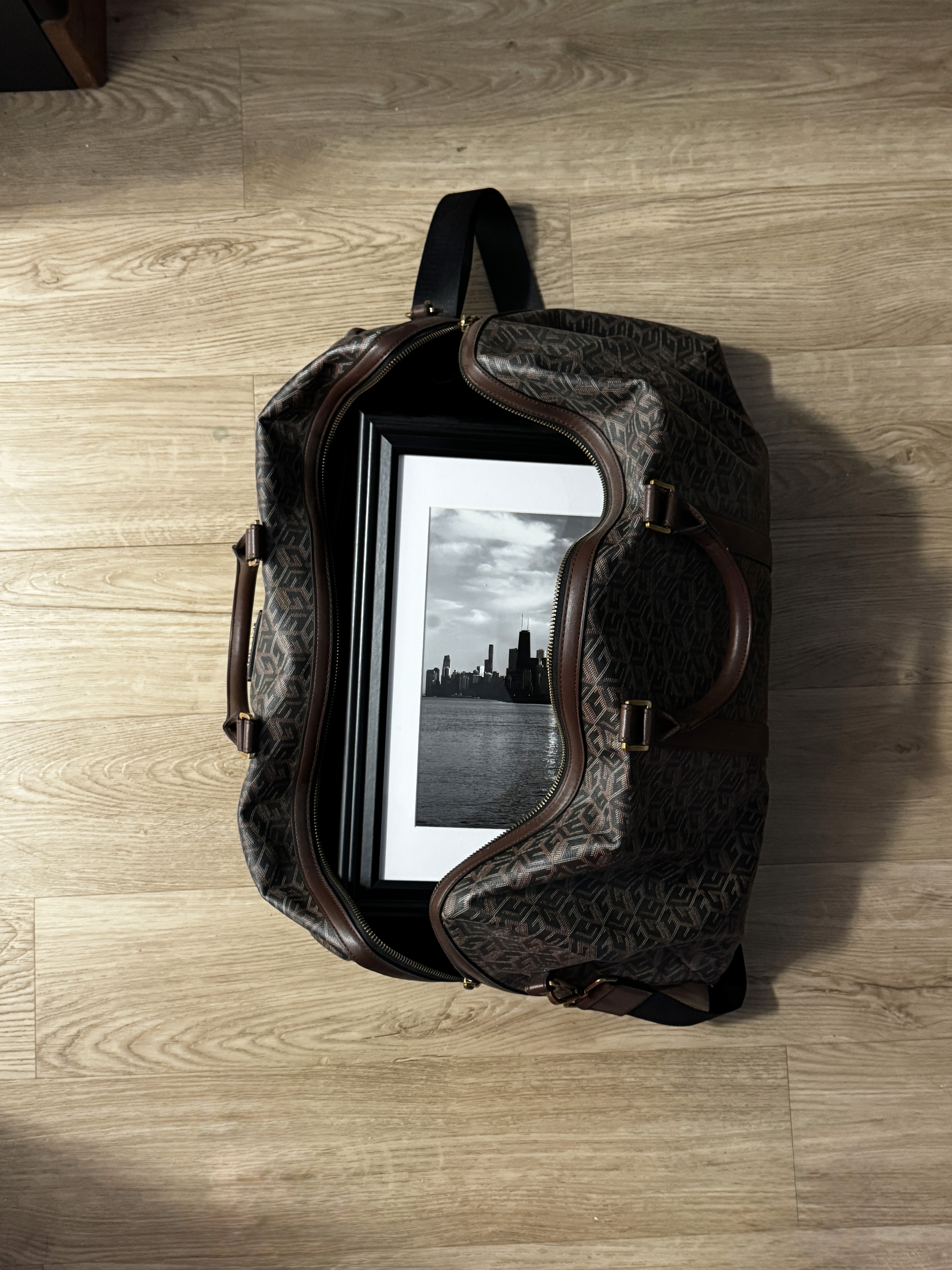 I took a list of frames to Porsche for a gallery. I never would have thought how interesting it looks to see a stack of frames filling out a weekender. It has turned into a new unofficial method to move them around.